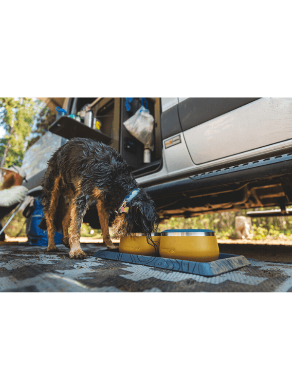 Pustolovščina se začne v baznem taboru. Ruffwear-ova Basecamp Mat podloga za posodo ponuja vašemu pasjemu spremljevalcu mesto za osvežitev in okrepčanje pred naslednjim podvigom.