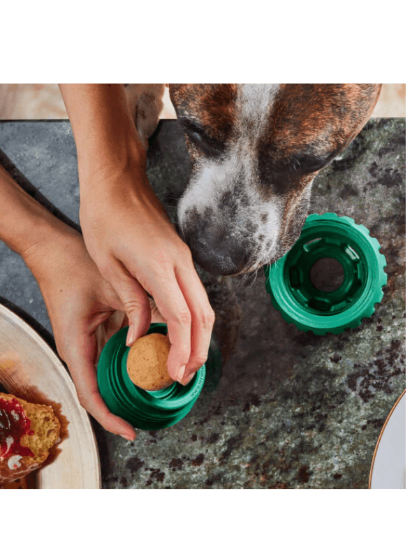 Pupsicle se odpre na sredini za enostavno polnjenje, čiščenje in ponovno uporabo. Za začetek odvijte dno, vanj spustite priboljšek zaprite in ga dajte svojemu psu. Užival bo v igri, vi pa boste imeli 20 minut neprekinjenega časa zase! V igračo lahko napolnite svežo hrano, za dodatno dolgotrajno razvedrilo pa uporabite pladnje za domače zmrznjene priboljške. Medtem ko je vaš pes zaposlen, bo hkrati tudi mentalno stimuliran in pomirjen. Idealno za sproščen čas počitka, trening ali ciljno vadbo za pse z visoko energijo.